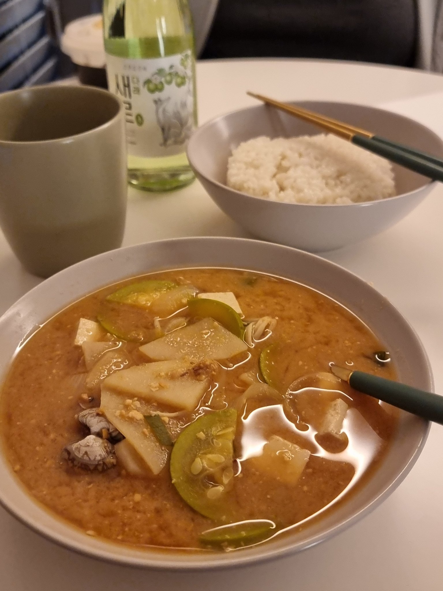 - яхния с ферментирала соева паста, тофу и зеленчуци (doenjang-jigae)