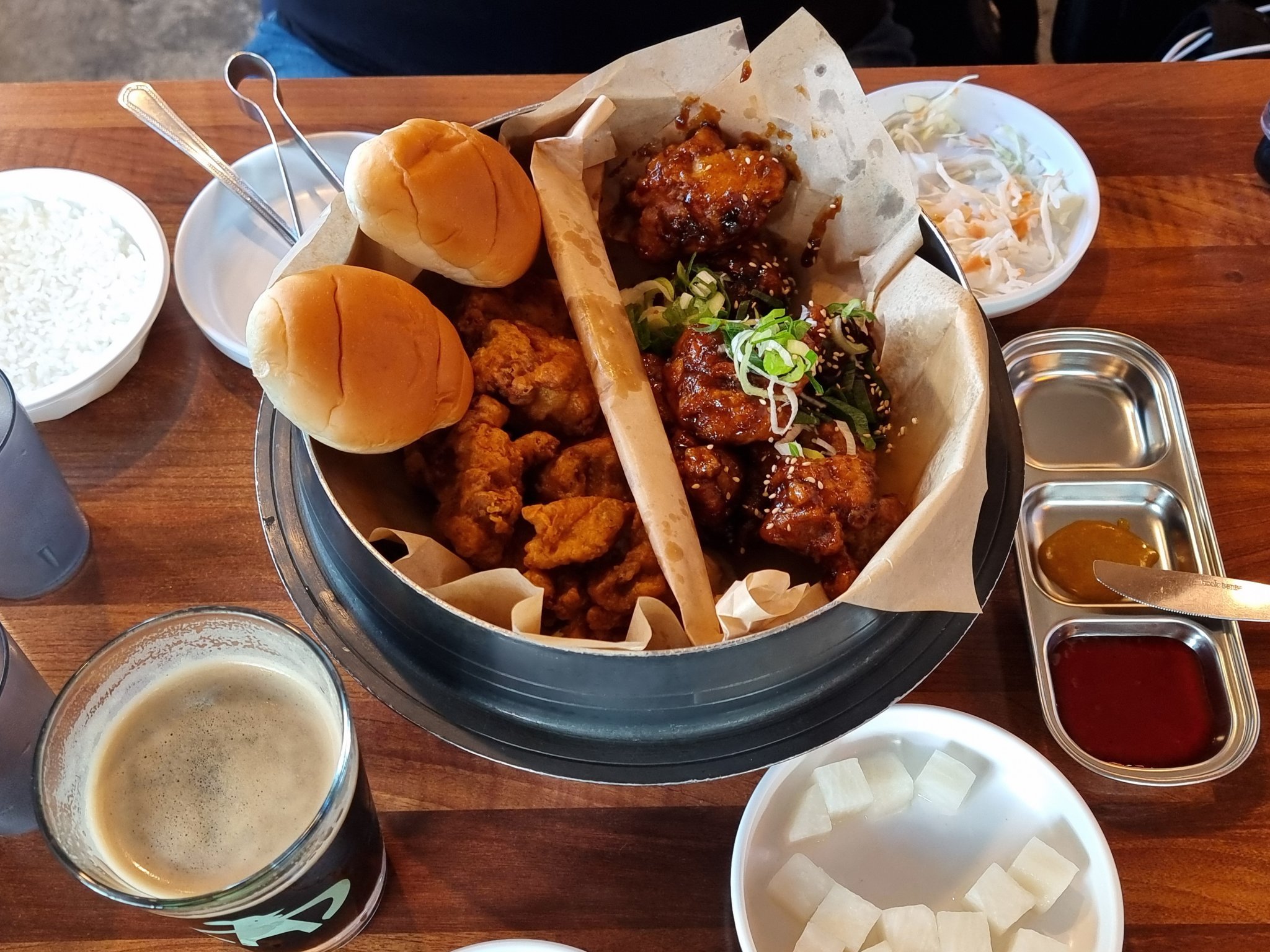 - корейско барбекю с месо от местна порода черни прасета, отглеждани на остров Чеджу. Придружено с оризова бира 😀