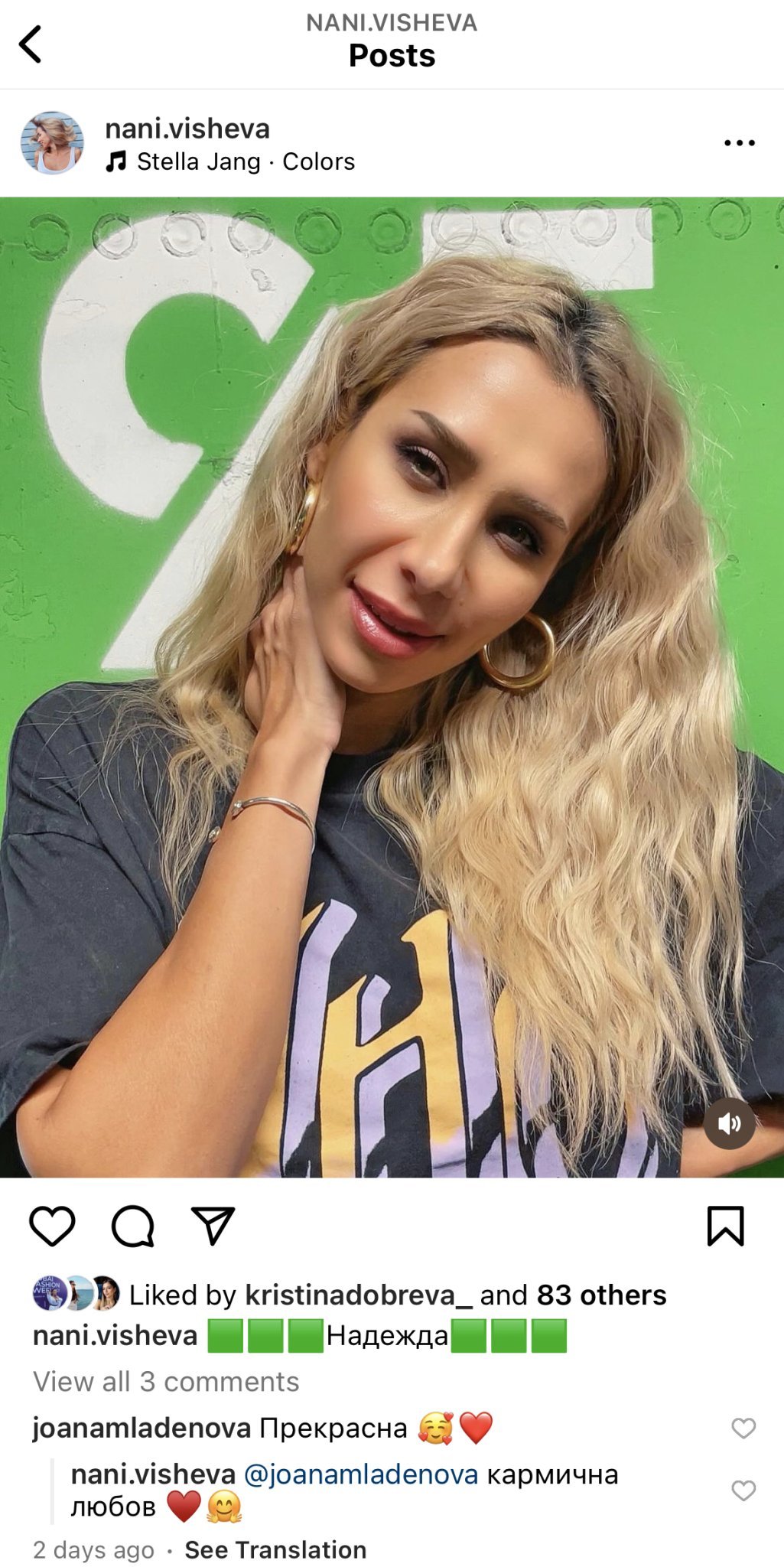Ето вижте Йоана Младенова (непотвърдената сестра на ергена) как коментира последната снимка на нарочената за полуфиналистка Нани в инстаграм.