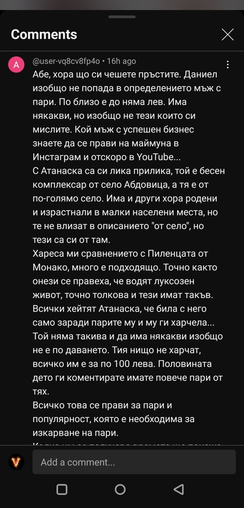 Аз пък не мисля, че някой ги мисли за милионери. Само като им видиш къщата и ти става ясно, че не са! Турските реплики даже няма да ги коментирам, че става банално. 😅 Но не са и със сто лева в джоба, както беше написано в онзи коментар. Имат си възможности хората.