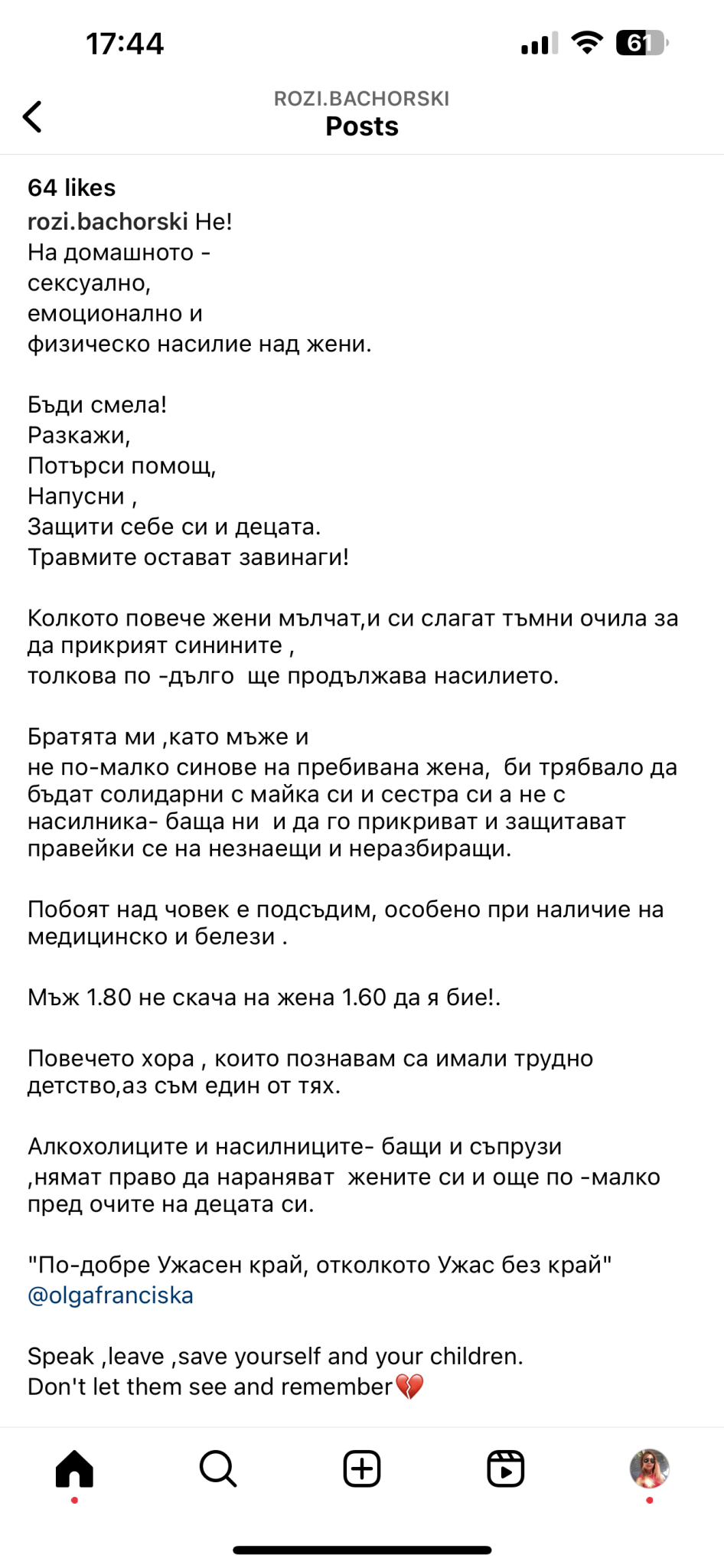 Поста на Рози отразява грозната действителност. Личи си, че тя е страшно наранена от баща си и едва ли би могла да му прости.
