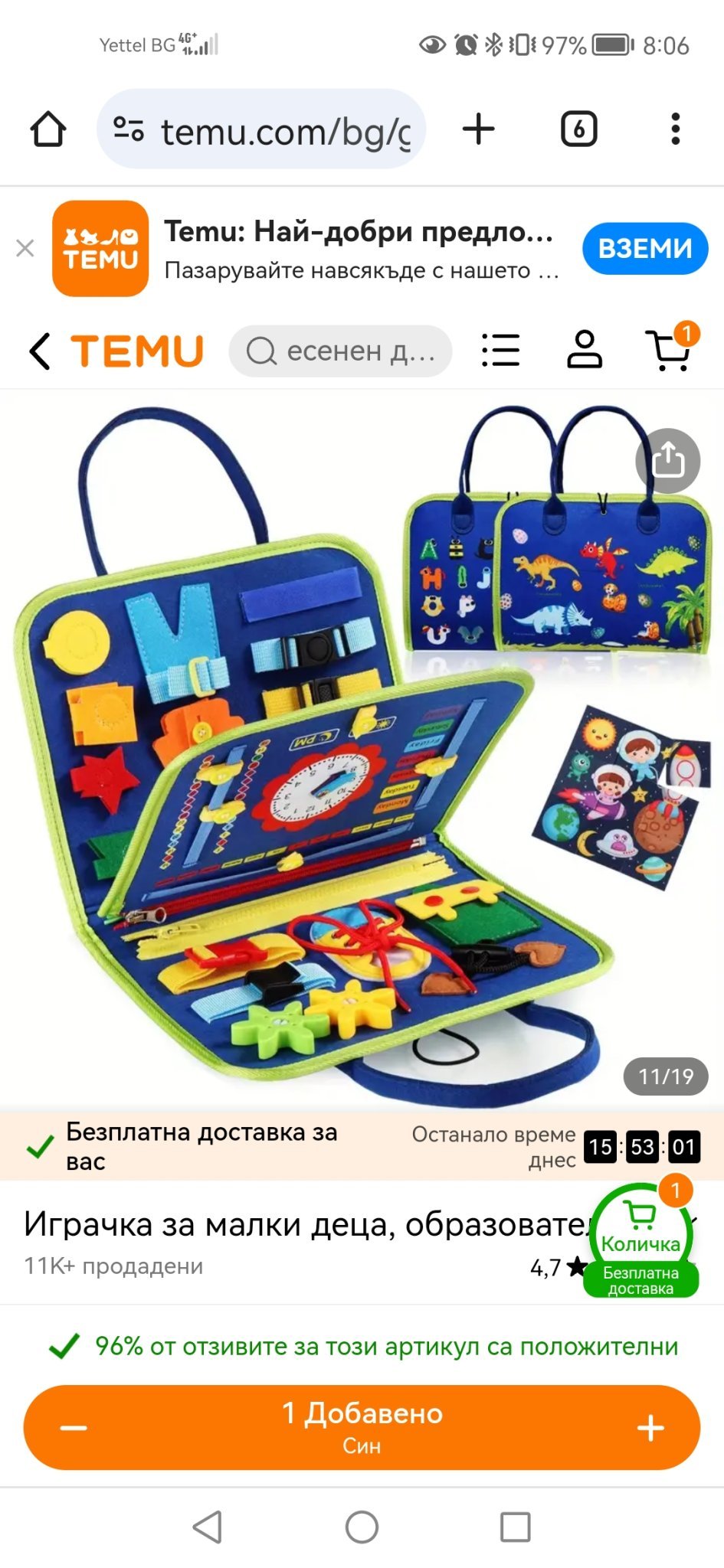 Лизи и ние имаме подобно като мечето,но рядко играе с него. Подобен бизиборд имаше в Пепко скоро гледах,но качеството не беше много добро,но пък то на децат им писват бързо играчките. От този сайт не съм поръчвала,а доста често ми излизат неща🙄Дали стават нещата,понеже са доста евтини?!🙄🤷♀