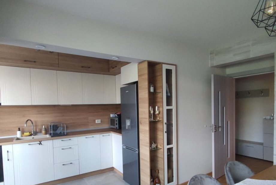 Ето я кухнята, в долния десен ъглов шкаф са сервизи, йенско стъкло, гювечета, никога не го е отваряла 😃 а в долното чекмедже са подправките, в кухнята нищо не съм местила. Само от витрината махнахме бутилките най-отдолу, но и нея не я пипа. Да не дърпам дявола за опашката, но само една чаша счупи веднъж и то защото аз я бях оставила на нощното ми шкафче. Е, целува и ближе вратите на терасите и огледалата, ама са бели кахъри това 😃