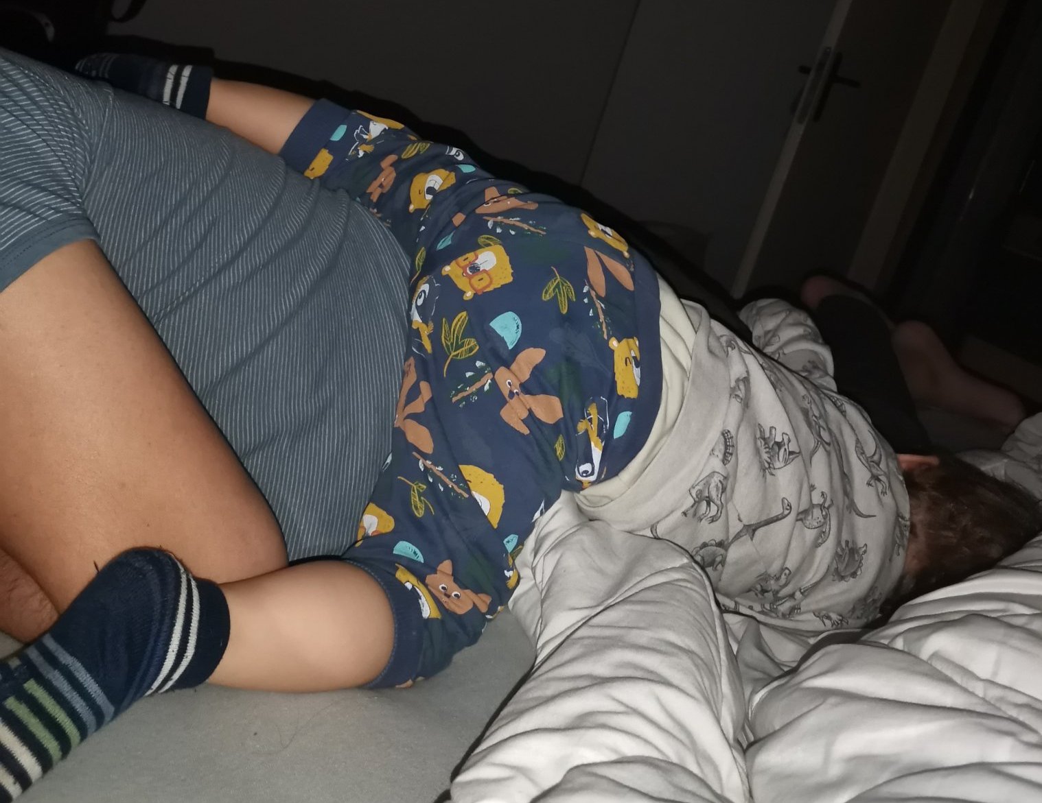 Гро.... Яна поне да ме гушкаше, а тя ми спи в краката или хоризонтално на спалнята, заради  което ние с баща ѝ спим на края на леглото.