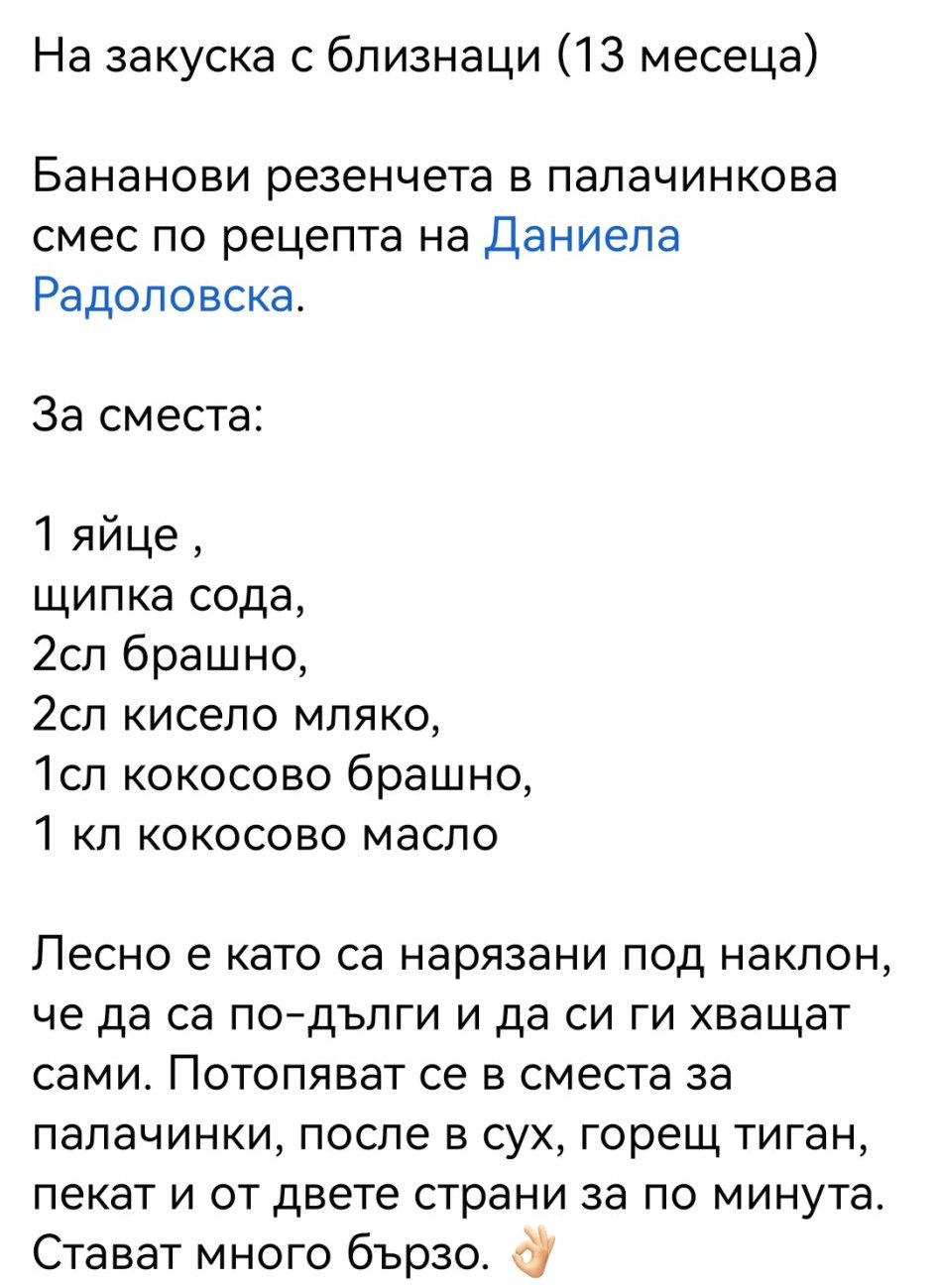 За сега поне Яна яде всичко, но пак пасирано, от днес започнах със съвсем по малко едра храна, задавя се малко , но ще видим до къде ще я докараме, мисля че тя ще ми е в пъти по лесна.