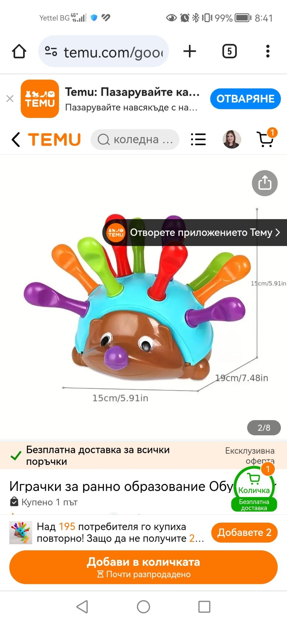 Но не ми даде да поръчам повече от една бройка. Една бройка на 4лв, втората 30лв. Та трябва да вляза от на мъжа ми/майката ми  телефона и да си поръчам още по една бройка от всеки, на ниската цена.