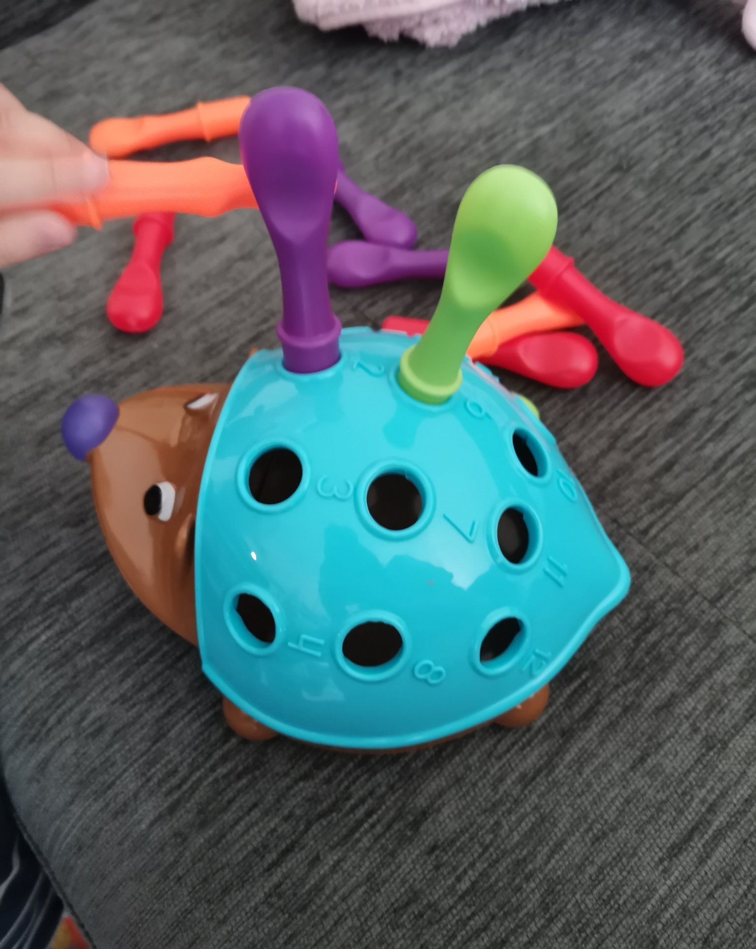 Аз имам слона с топки, таралежа, дъската таблет за писане и изтриване, стикери, зеленчуци за рязане, куфарчето,  водната книжка. Като не ми харесва нещо, връщам и връщат парите. Даже понякога връщат парите и няма нужда да го връщаш продукта.