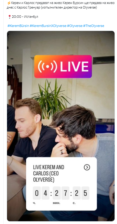 Когато започна да се говори за проекта Olyverse и участието на Керем в него си представях предоставяне възможност на фенове в тази т.н мета вселена сами да се опитват да създават по измислени от тях сюжети клипчета, използвайки дигитализирани герои с образа на Керем. Запознаване , живот и дейност в тази нова виртуална реалност. Sunglasses И то безплатно... Или под някаква друга форма символично заплащане.  А не брандиране на чаши, тениски, шапки, готварски рецепти.  Smirk Меко казано съм разочарована. Mask За мен това е губене на време, енергия, измествате на фокуса. Отлагане на нови проекти, свързани с киното и крачка встрани от дългогодишната му дейност, свързана с работа по много и важни за обществото проблеми. За част от които отново получи признание и награда само преди няколко дена.Nature Zap