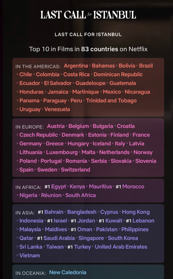 Първата турска продукция и от сериали и филми, която две седмици е номер 1 в световен мащаб за неанглоезичи филми на Нетфликс 👏👏👏