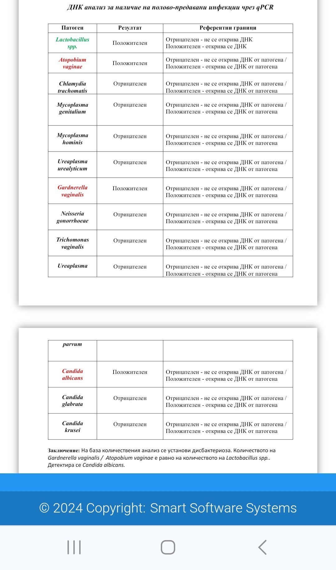 Съответно - ще трябва да се лекуваш с АБ (орален и глобули), антимикотик, след което Вагизан и Гинофилус.