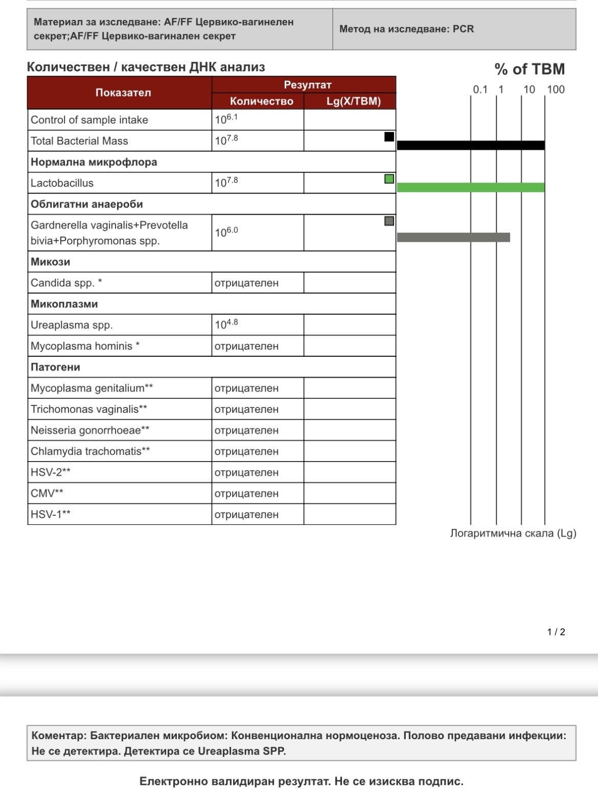 Гарднерела също има, необяснимо за мен как вирее, при наличието на толкова много лактобацили, които си имаш. Но, гарднерелата ще я пребориш и с 2 глобули арилин рапид 2 вечери подред, но уреаплазмата си иска друго лечение. След всичко това - една хубава терапия с вагинален пробиотик. Към антибиотика за уреаплазмата обезателно приемай Б комплекс също.