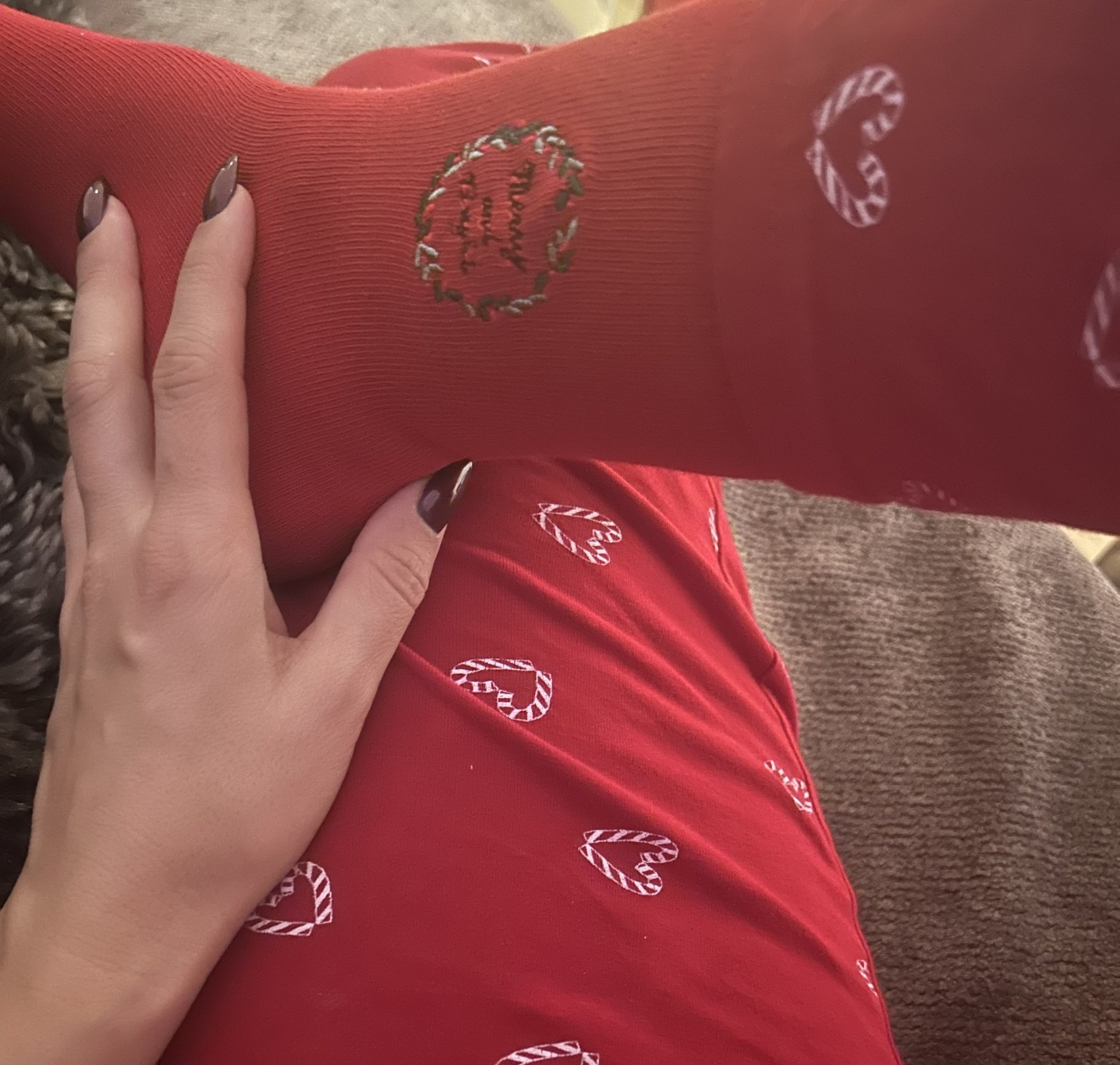 В тон с атмосферата- коледна пижама и чорапи 😀.