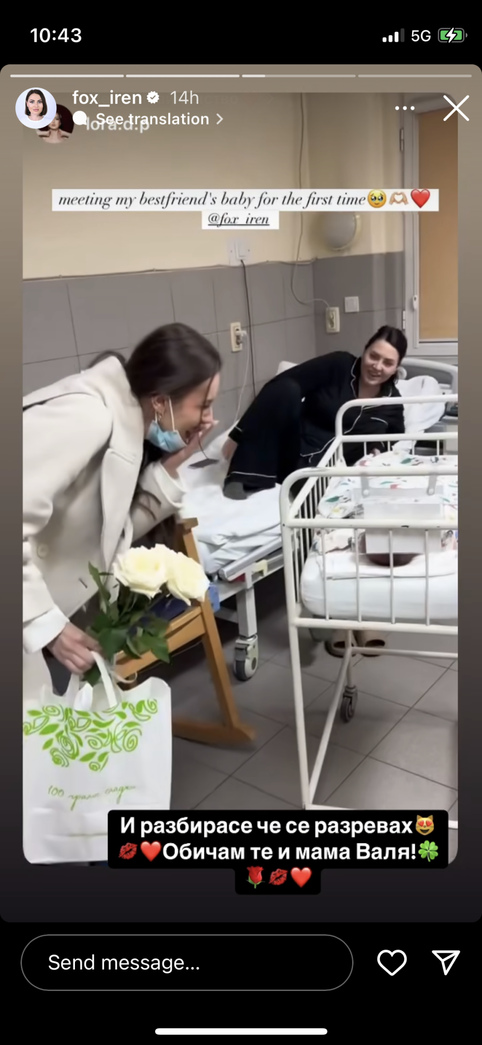 От стори на българска инфлуенсърка се вижда как и е на свиждане дори приятелка вътре в болницата, а не в двора. Не знам дали е защото е при др. Вецев или защото е известна. Позволявам си да кача скрийншот, защото беше качето на публично стори.