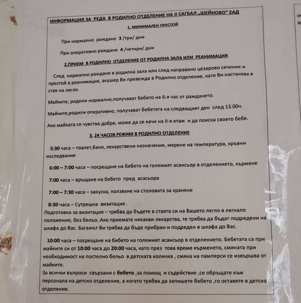 В отделението беше пълно с хора, което ми направи лошо впечатление, все пак е грипен сезон. Мисля, че във вип стаите спяха бащи без проблеми, но трябва да се пита допълнително.