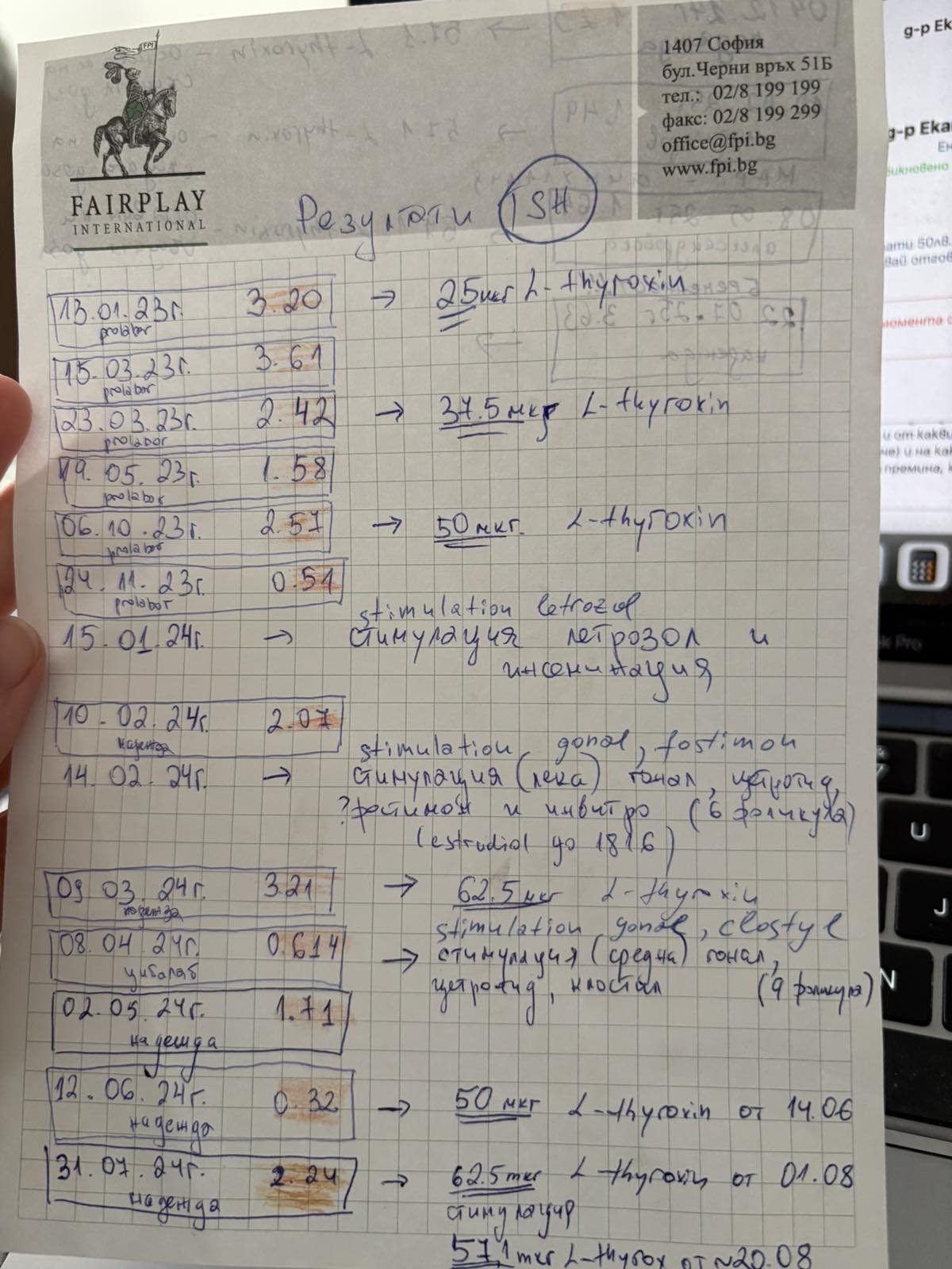Прикачени ще видите последните изследвания и история на всичките ми измервания, както и от какви събития са били придружени (стимулации най-вече) и на какви дози съм била.