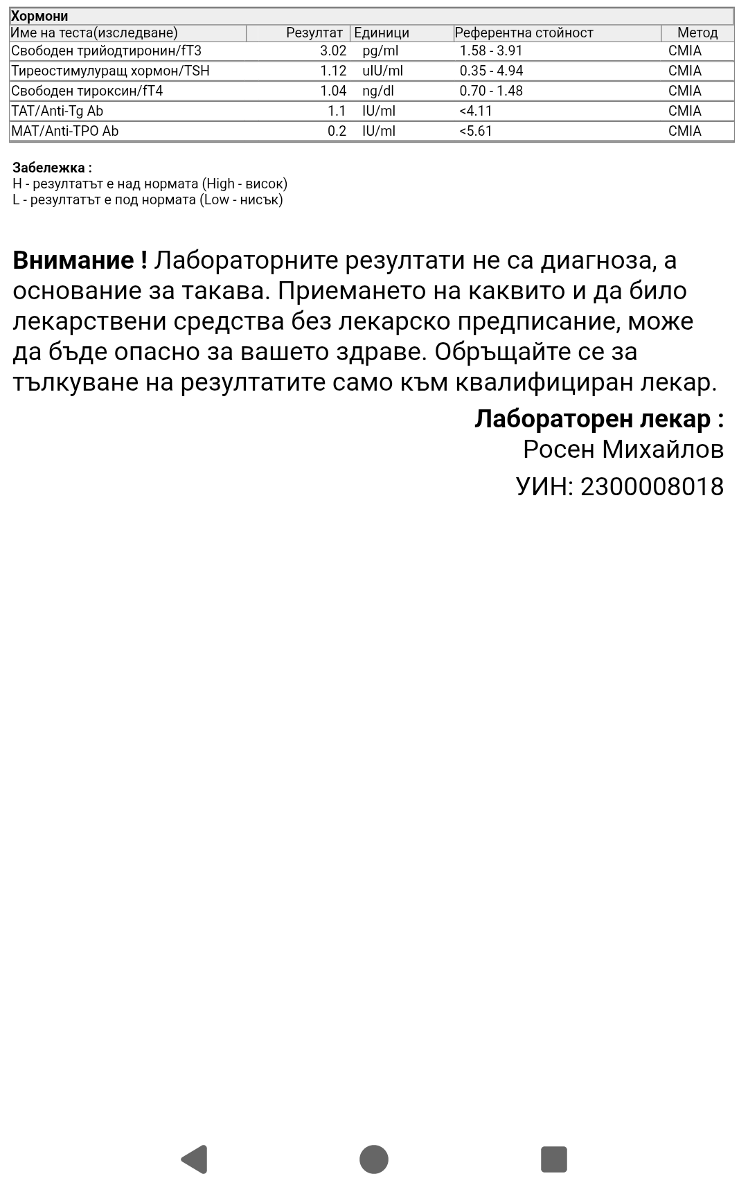 Эдравейте, имаме предположение за хашимото. Бихте ли погледнали резултатите за мнение. Благодаря предварително.