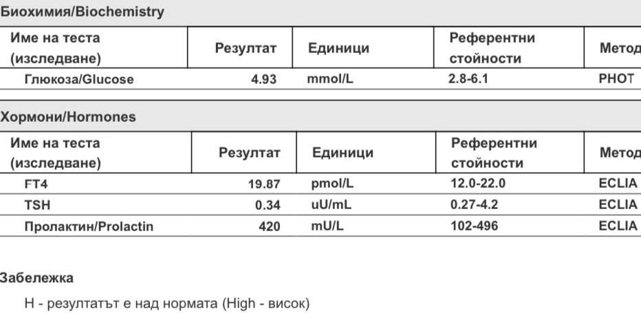 Здравейте, SVS! При висок пролактин, ако има отделяне на секрет от гърдите, то е двустранно, така че резултатът е достоверен. Половите хормони също са в норма, витД също. Стойностите на ТСХ и фТ4 са като след преходно нарушение в хода на вирусна инфекция. Предвид цялата симптоматика е възможно да сте изкарала лек Ковид и сега да понасяте последствията, които се очаква да отшумят. От моя гледна точка не се налага хормонална терапия. Проследете ТСХ, фТ3 и фТ4 след месец.