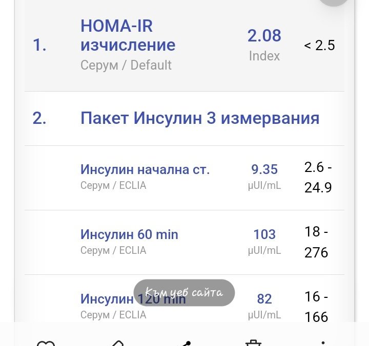 HOMA ( IR ) Инсулинова резистентност индекс      2.34   индекс   < 2.5 норма; 2.5 - 5 рискова IR ; >5 висока IR
