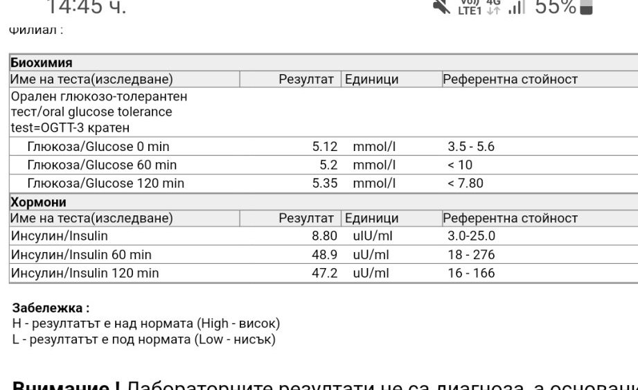 Здравейте, д-р Въндева. Може ли мнение за резултатите? Може ли да се каже, че имам инсулинова резистентност? И ако според Вас стойностите са високи, може ли да се коригира със спорт и хранене, без лекарства?