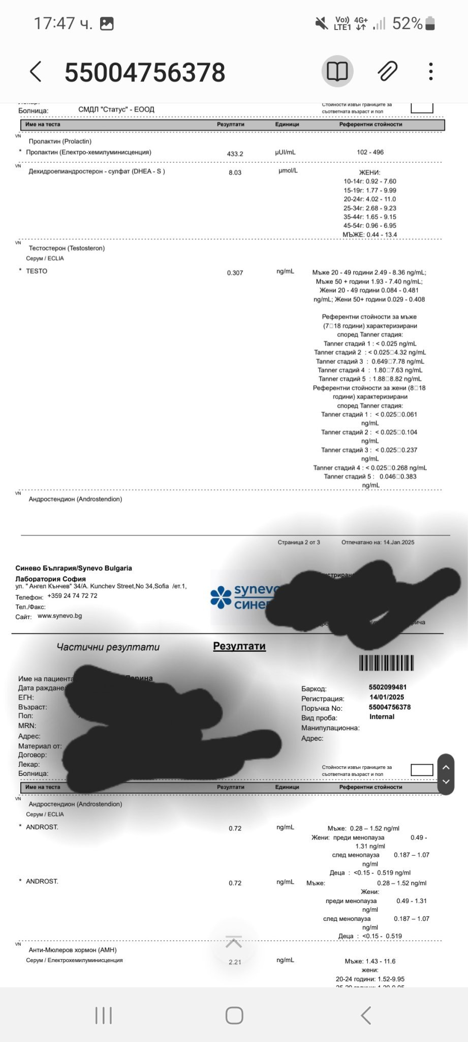 Здравейте д-р Въндева бихте ли си изказали мнението за тези изследвания . На 3тия ден са правени от цикъла . На 31 г. с дете на 1 г.и 3м. Нямам апетит ,мога да кажа ,че почти не ям , а в същото време качвам кг.