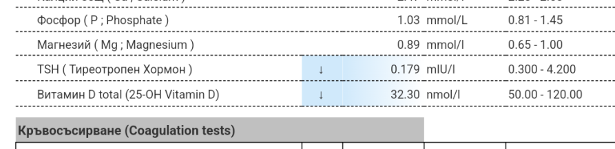 Искам да Ви попитам, от няколко месеца имам рязко намаляване на теглото, постоянна тревожност и паник атаки, храня се, но килограми не качвам. По принцип съм много слаба, а сега съвсем. Имам и нередовен цикъл, но той е така от самото си начало, правени са ми изследвания при вас в Майчин дом преди много години и не се установи проблем. Преди 3 години родих и известно време всичко беше нормално. Преди 2 дни ми се появи и кафяво зацапване, цикълът ми закъснява, не се съмнявам за бременност. Като цяло симптомите, които ме притесняват са сваляне на килограми, неспокоен сън, това зацапване и умора. Правила съм кръвни изследвания на щитовидната жлеза и ще ги прикача. Та въпроса ми е какви изследвания мога да си пусна преди консултация, тъй като в града ми няма ендокринолог. Поне някои основни, които отговарят за симптомите ми. Благодаря Ви предварително!