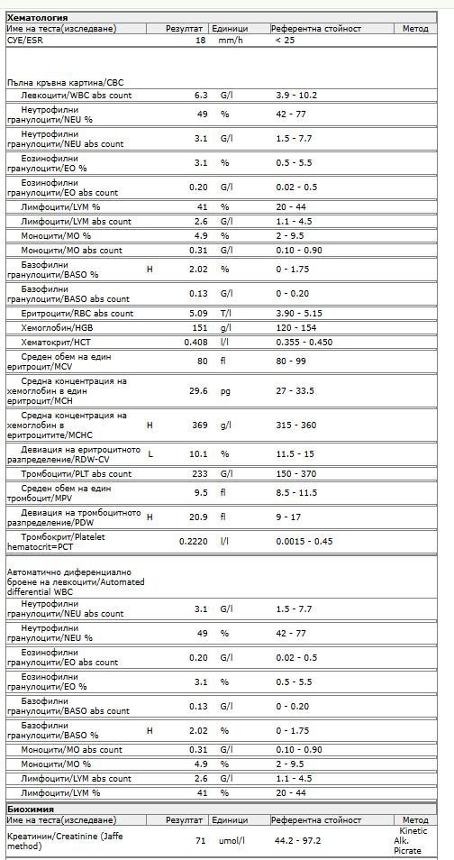 LDL Холестерол            2.94   mmol/L   Оптимално< 3.34; Гранично висок -3.37 - 4.12;Висок 4.14 - 4.89;Много висок >4.92