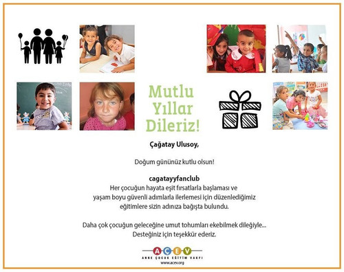 Çağatay Ulusoy, Честит рожден ден! cagatayyfanclub дари от твое име за обученията, които организираме, така че всяко дете да започне живота си с равни възможности и да продължи напред със сигурни стъпки през целия живот. Надяваме се да посеем семена на надежда в бъдещето на повече деца.. . Благодарим ви за вашата подкрепа.