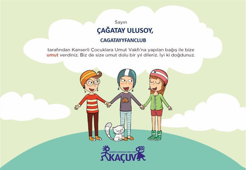 Уважаеми ÇAĞATAY ULUSOY, вие ни дадохте надежда с дарението, направено от CAGATAY FANCLUB на Фондация Надежда за деца с рак. Пожелаваме ви и година, изпълнена с надежда. Честит рожден ден.