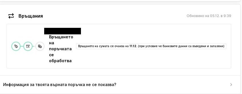 - За определени артикули имаме няколко доверени партньори, които доставят за нас. Ако пратката ти е изпратена, чрез някои от тези доставчици, ние нямаме достъп до статуса на върнатите от теб артикули.