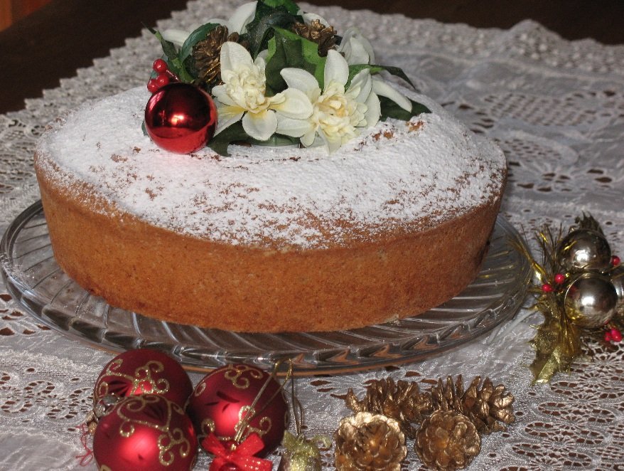 Продукти: 4 яйца, 100 г захар, 3 с.л. мед, 175 г брашно, 100 г орехи, 175 г масло,1 бакпулвер, 4 с.л. бренди, сока и кората от 1 портокал, 100 г сушени кайсии, 100 г сушени стафиди.