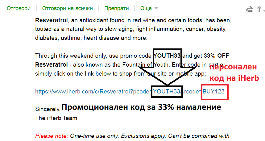 Код за отстъпка при поръчка от www.iherb.com: KJB032