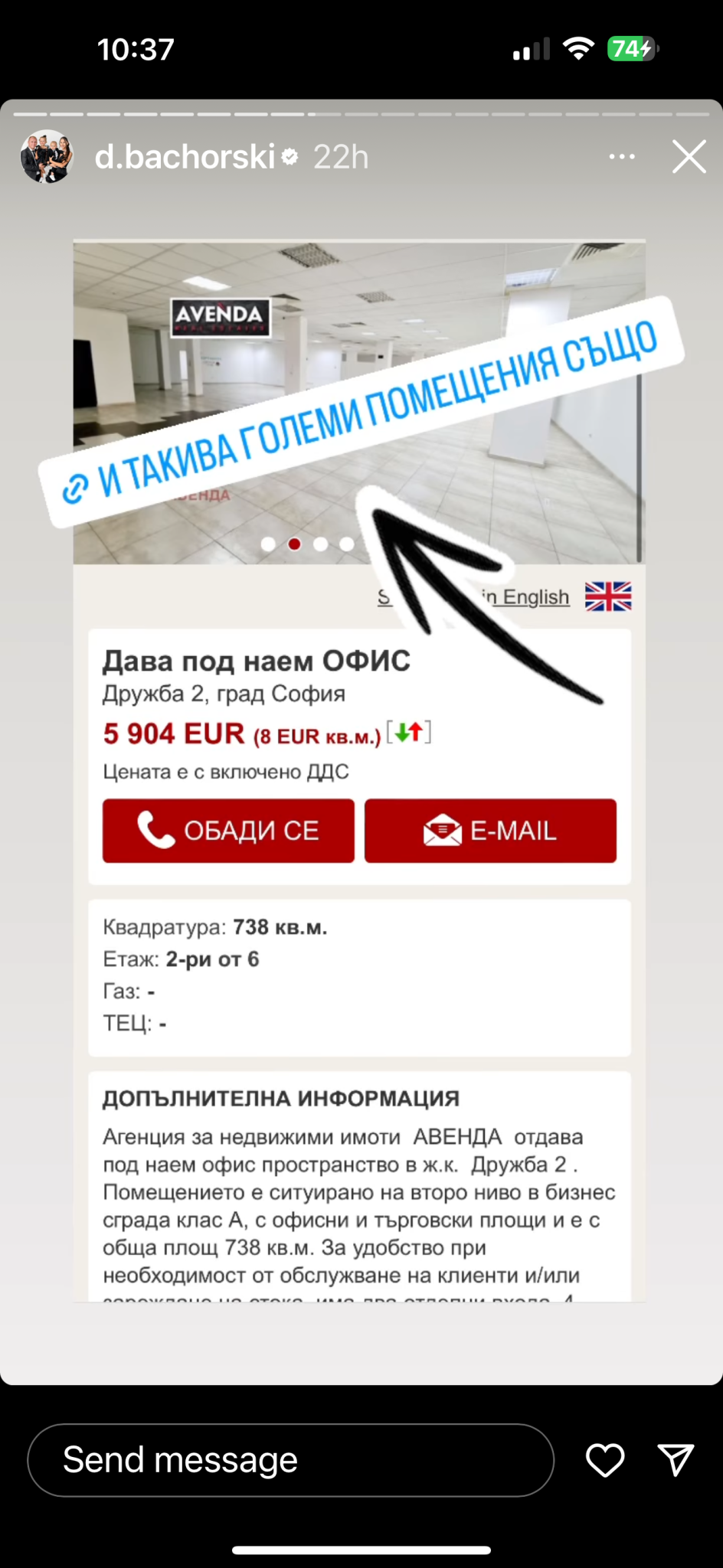 Шест бона на месец наем за етаж е доста сериозна цифра. Освен това ако ги имаш тези пари и си бизнесмен има достатъчно офис площи в бизнес сгради с всички удобства и охрана, даже и обзаведени - защо ще ходиш при чалгата в Дружба?