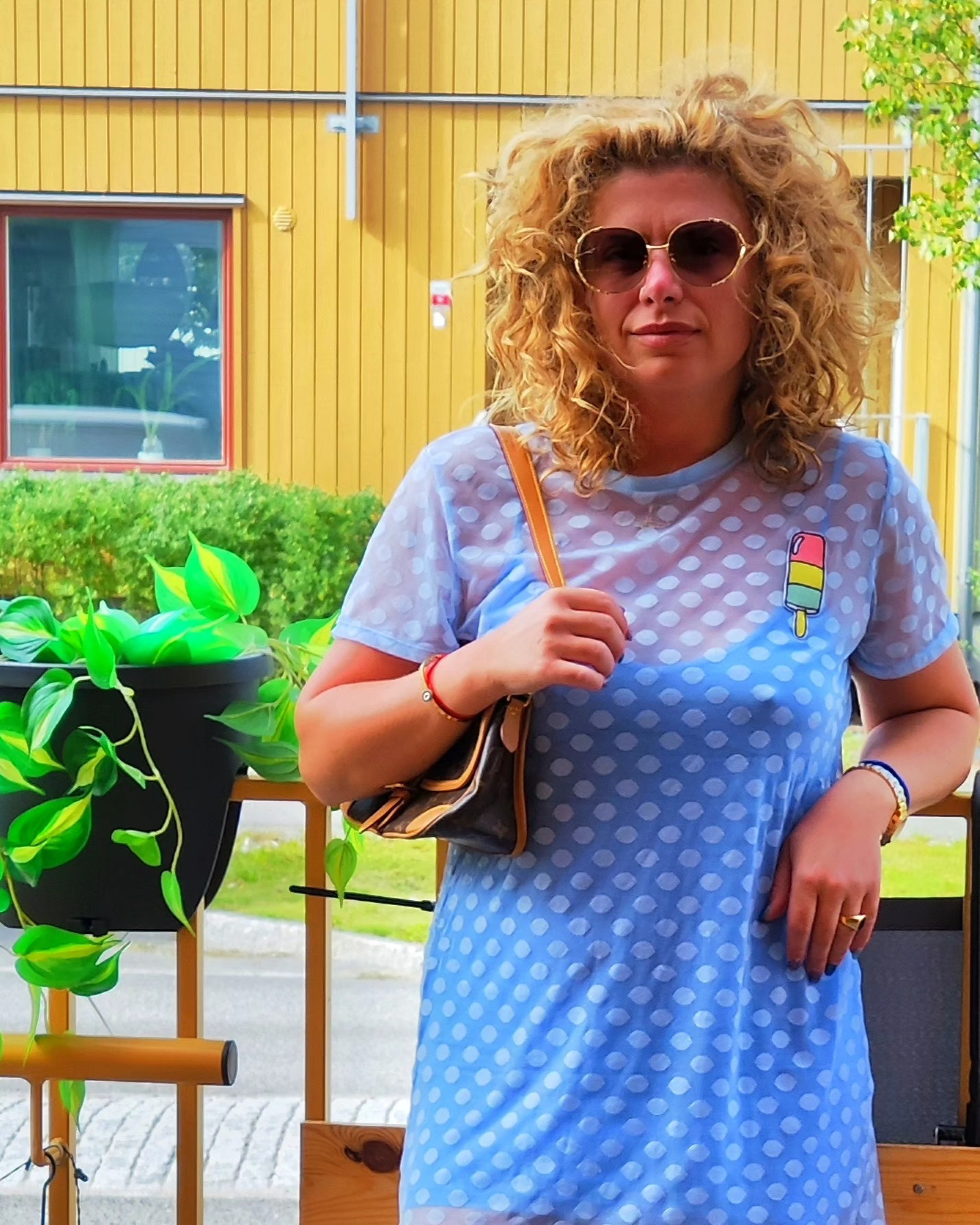 Ох, Рози е симпатична, но наистина се облича ужасно. Малко в стил кака Мими. Гледах я онзи ден с една бяла риза, вързана, корема гол. Няма тяло за такива дрехи. Като цяло голяма част от фамилията са като цигани, голяма шарения, голям кич.