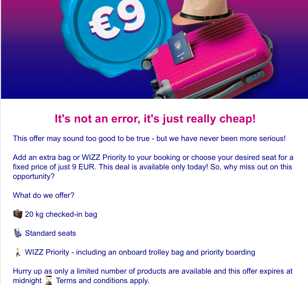 Ето промо от днес.. за чекиран багаж и за прайорити: