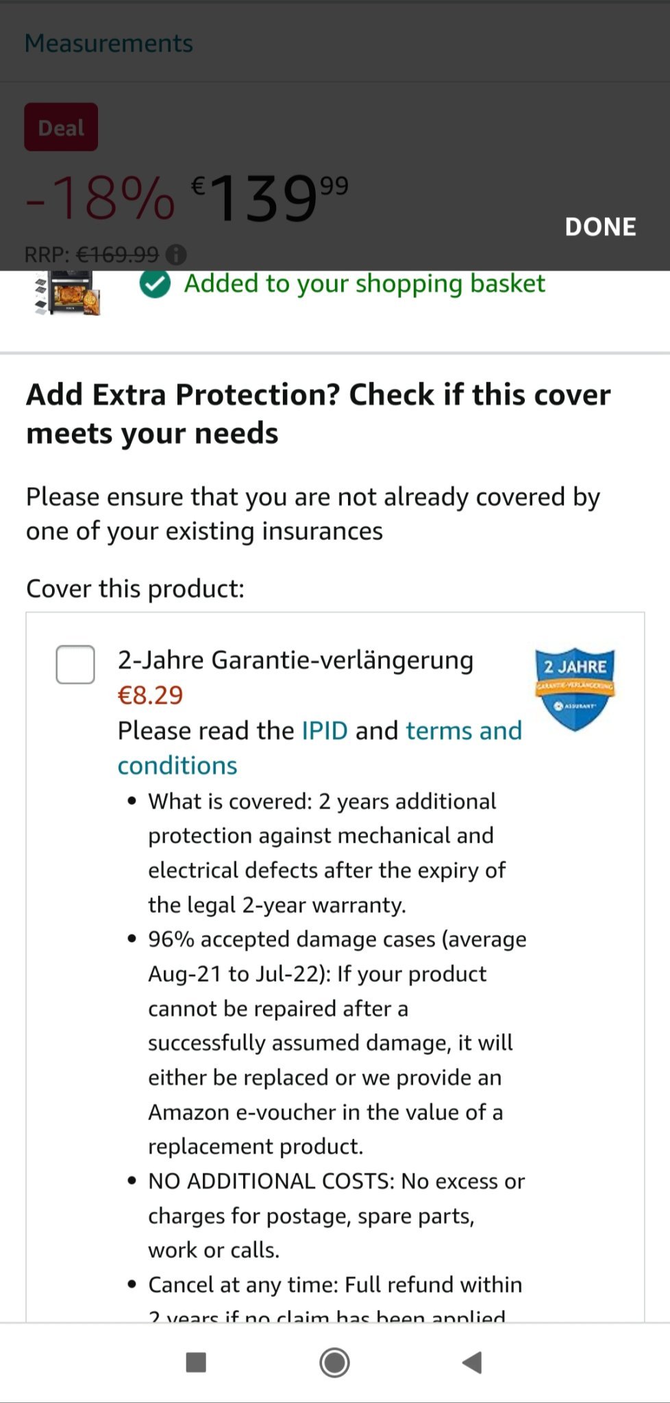 Също искам да попитам каква е тази гаранция, която излиза като опция при слагането на продукта в кошницата