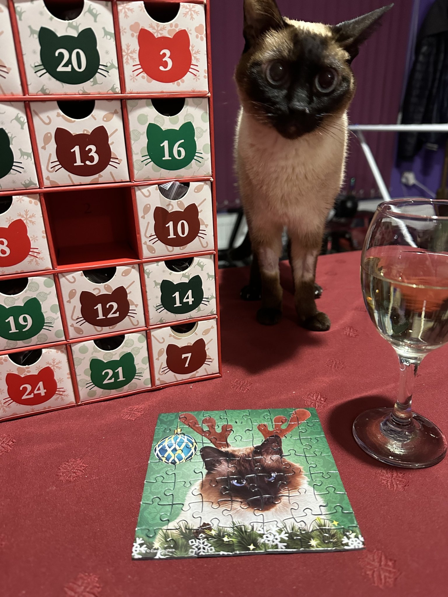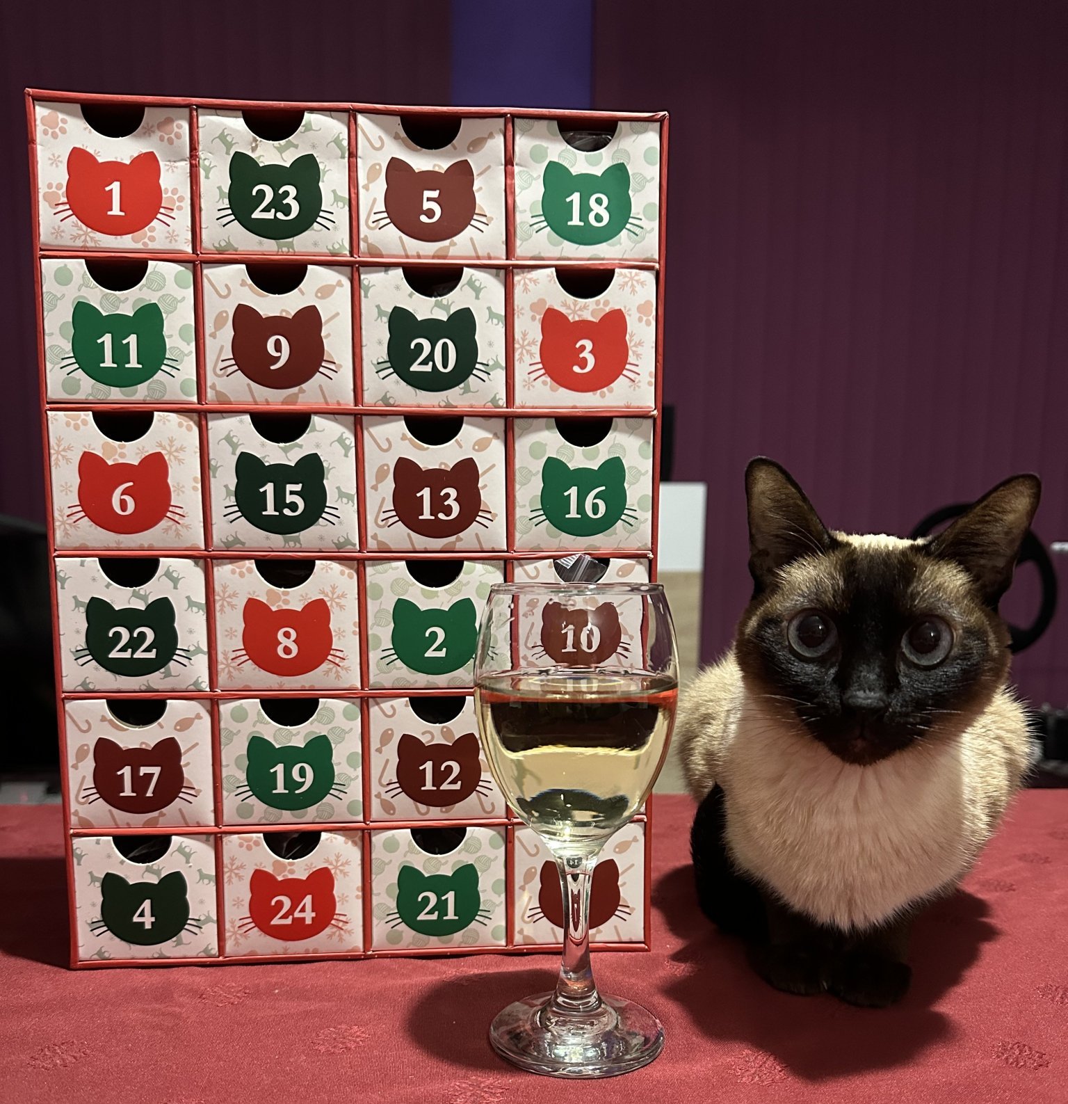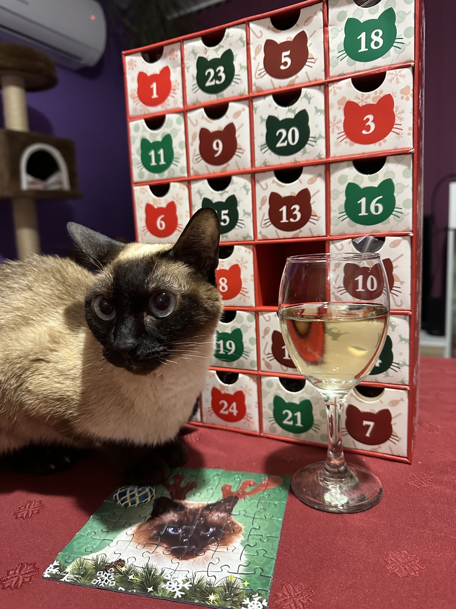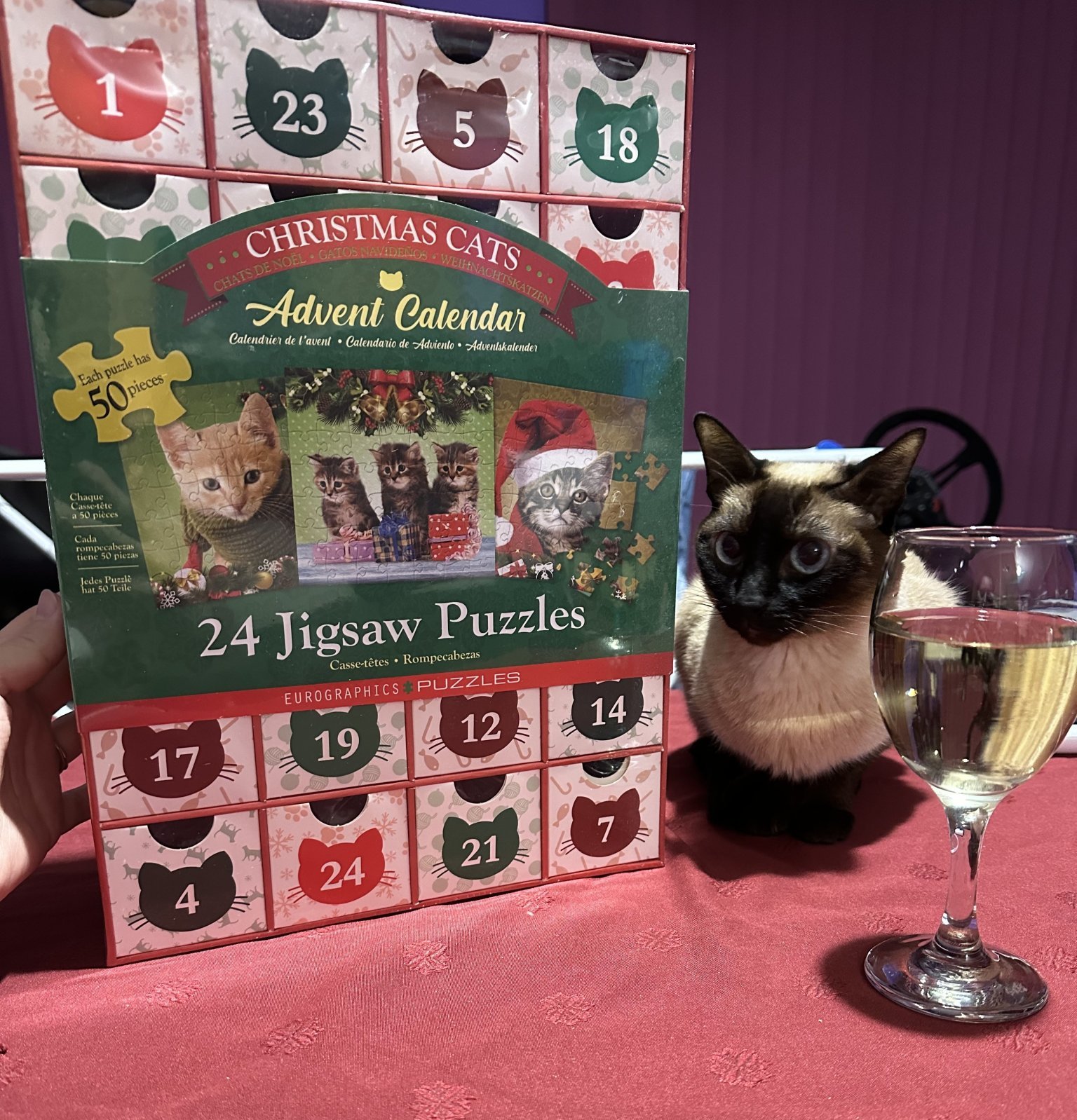 Стартираме така , като разопаковаме адвент календара с чаша бяло винце и с другарче за компания ❤