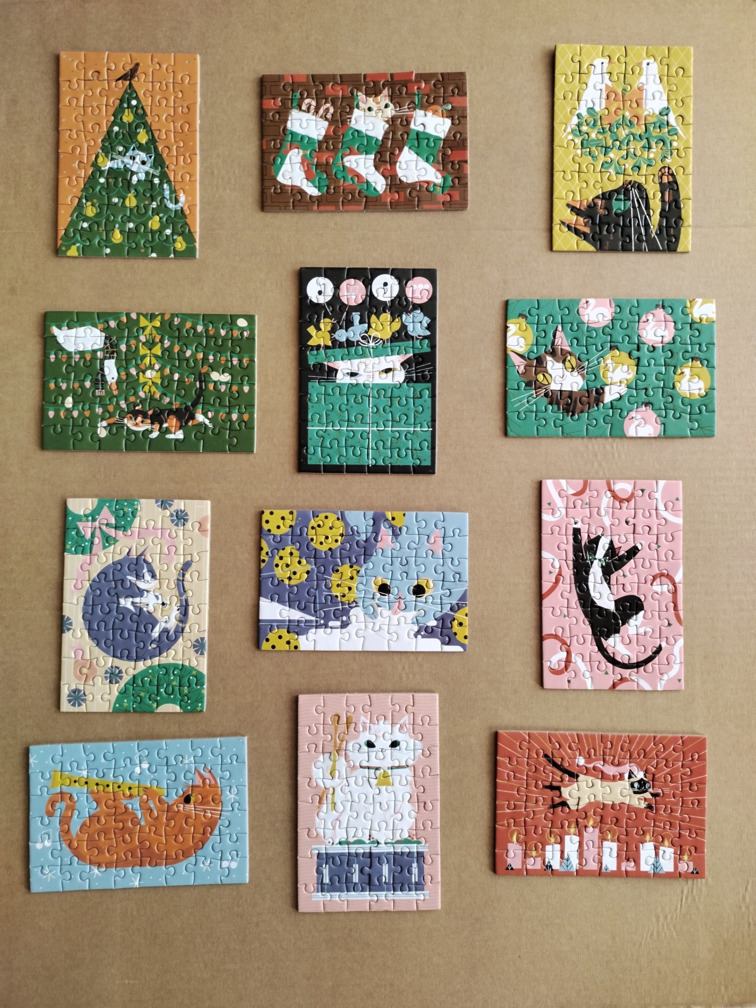 Някой беше споменал за разделяне на стандартните пъзели на малки части. И аз така направих с два коледни пъзела на Джъмбо.