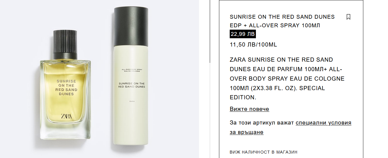 Моят син е малко по-голям и харесва SEOUL-копие на PACO RABANNE INVICTUS и SILVER-копие Гучи Гилти Абсолют.Но да се оплача от Зара.Парфюмите не са капсуловани.От 3 парфюма поръчани,получих 2.На третия не беше завит пулверизатора и целият беше изтекъл в кашона.