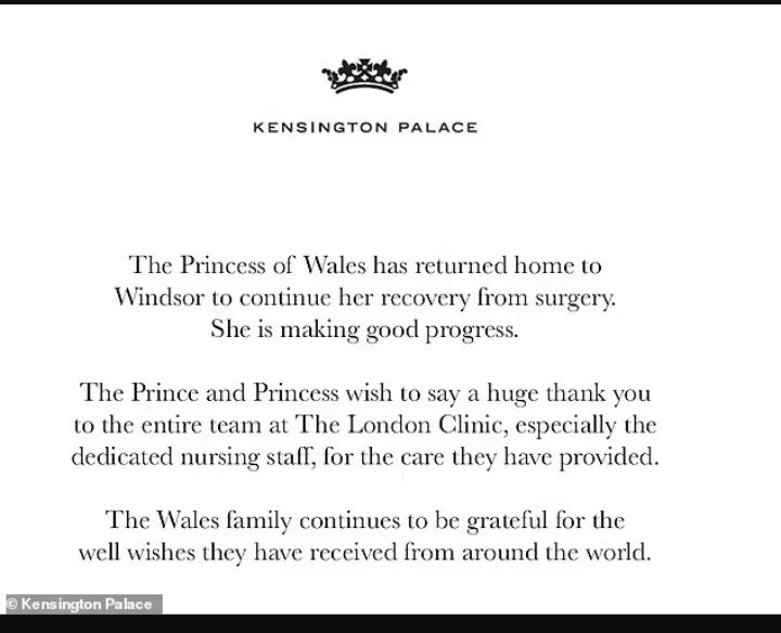 Ако е истина, че Катрин са я изписали, значи е била по-малко в болница от предварително обявеното.