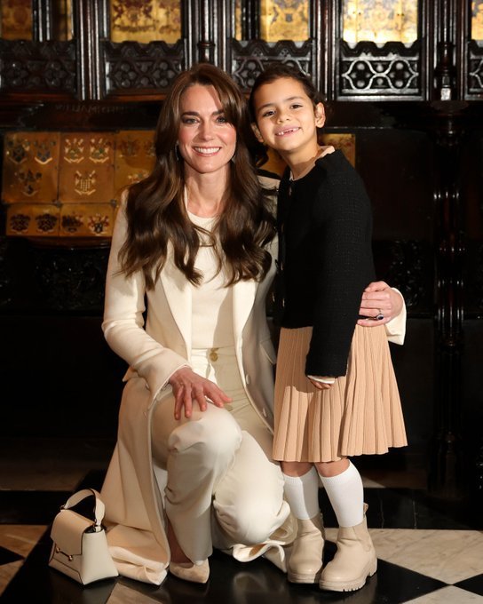 Много умел избор на тоалет на Катрин! Когато е тъмно и студено, когато всички са в тъмни тонове, Кейт е в бяло и се откроява. Изпъква, че е домакинята, без да се налага да прибягва до някакви шармантни тоалети. Най-обикновено скучно бяло, но много, много добър ефект! Перфектна работа на PR-ите ѝ. Отново!