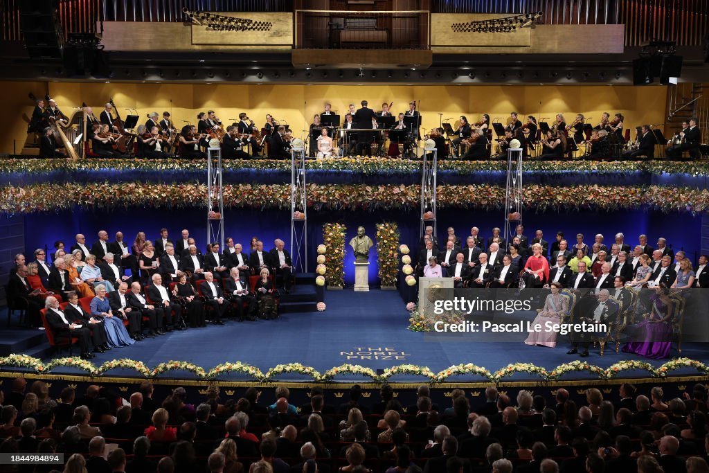 Церемония по връчване на Нобеловите награди 2023 Стокхолмска концертна зала.