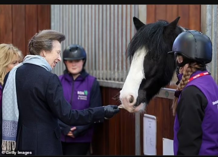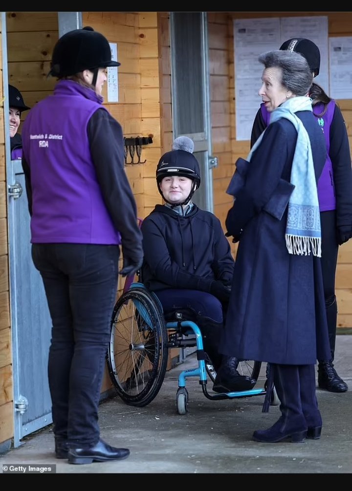 Ан на посещение в College in Nantwich, където се среща с ездачи с различна инвалидност