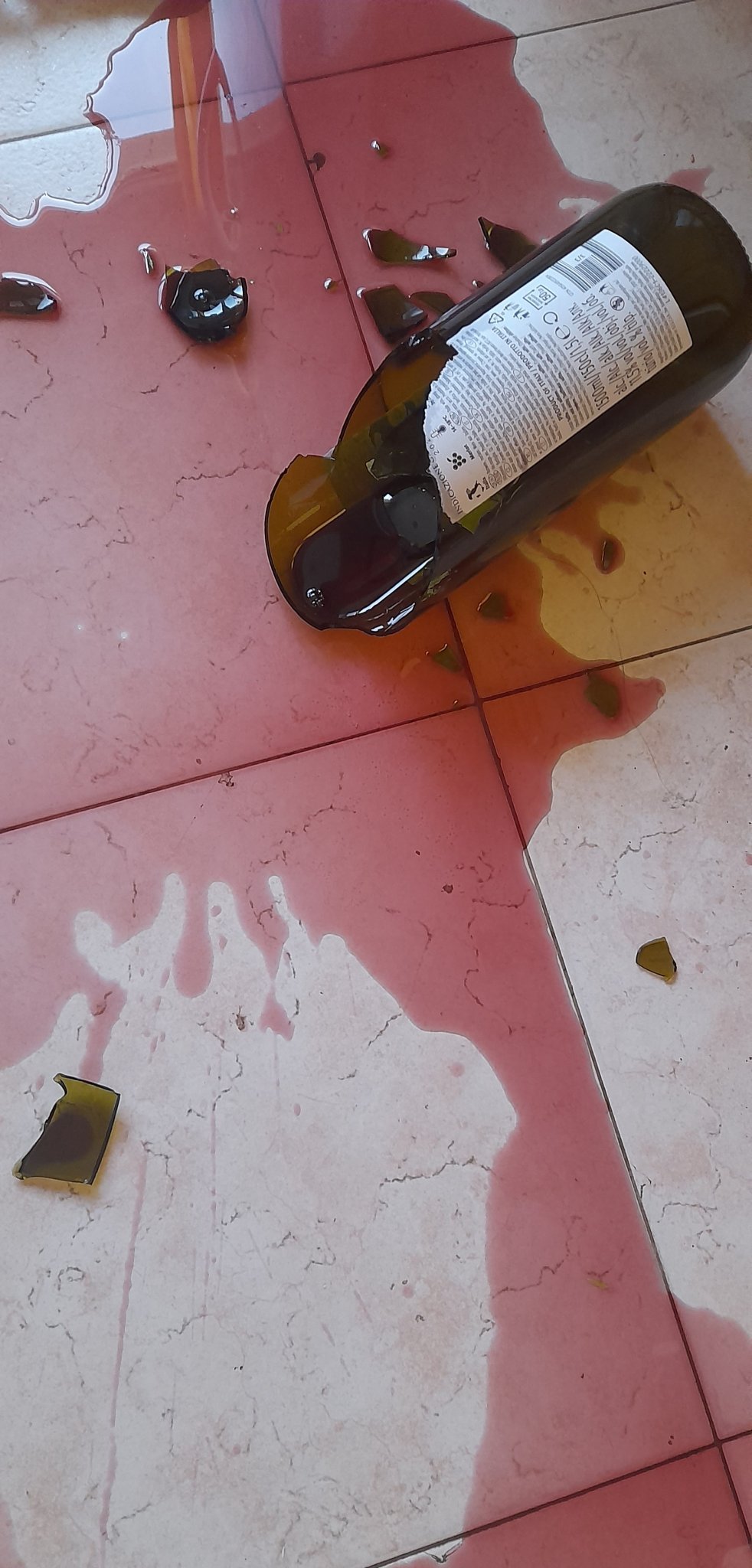 Малее, добре че е на плочки, че на килим остава завинаги!