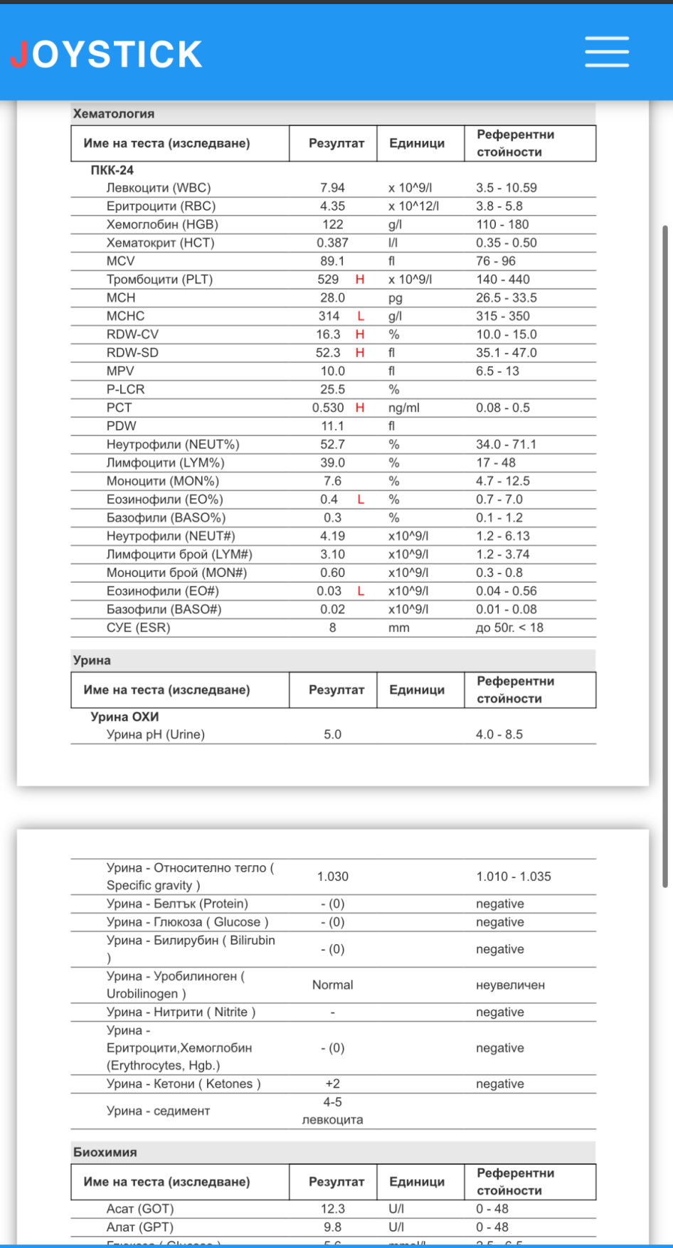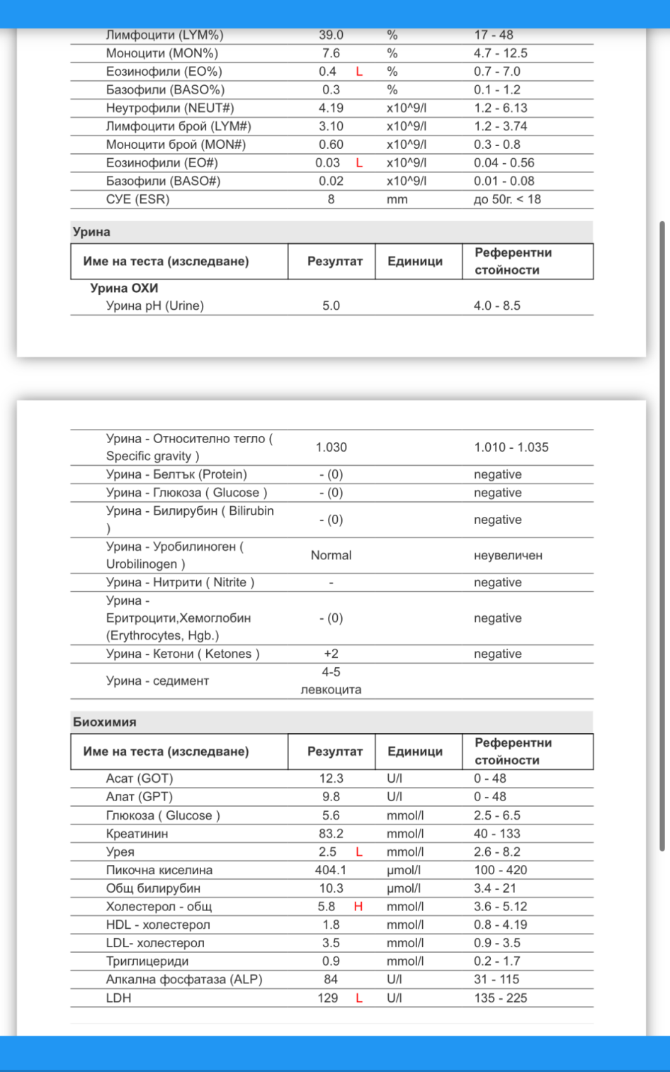 АГ ми каза в следващия понеделник преди прегледа да си пусна ПКК и ТСХ, което и ще направя, но междувременно днес ми излязоха резултатите от профилактичните прегледи от фирмата и съм притеснена. Често си правя изследвания, дори преди 2 месеца пусках и половината от тези неща не флагваха тогава и не съм виждала до сега да има проблем при тях. Може ли да коментирате дали има нещо много плашещо защото до следващата седмица ще полудея… на 30г съм