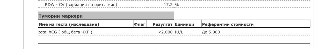 Точките и запетайките, които се ползват в Българяи са особено объркващи, а очевидно лабораторията е сложила "." за десетична запетая, гледайки референтните стойности Hands V (А някаква логика би ли имало нормата да е над 5 000, ако гледаме таблицата която очеиззвадно е с над 5 наличие на бременност?)