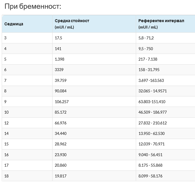 Дописвам. Гестационната седмица се изчислява на база последна редовна менструация. Тази таблица, която си копирал, предполагам ти направи впечатление, че за 5 г.с. стойностите са между 217 -7.138 Някак нелогично е числото до, да е по-ниско от числото от.