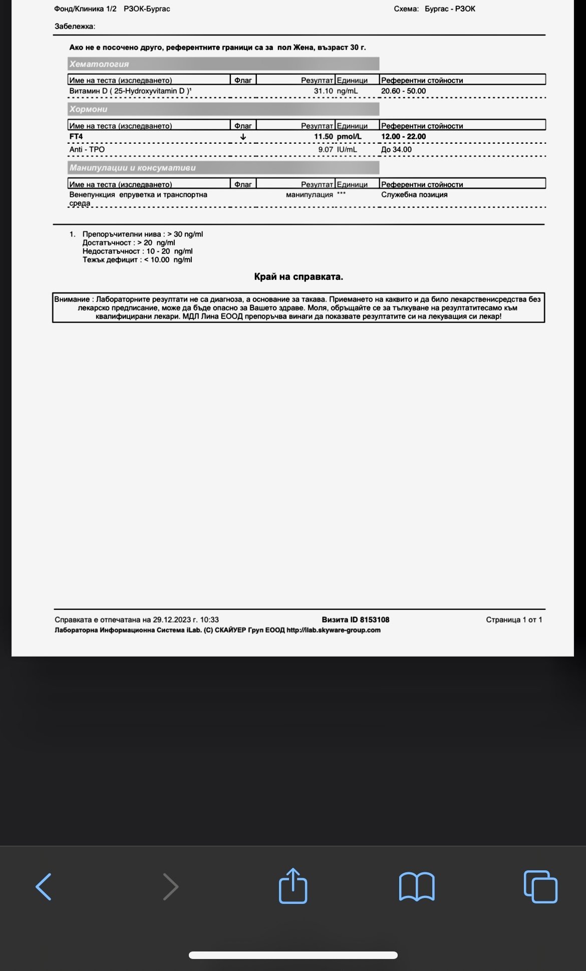 Притесняват ме ниските стойности на FT4 , а съм съм на преглед след 5 дена.