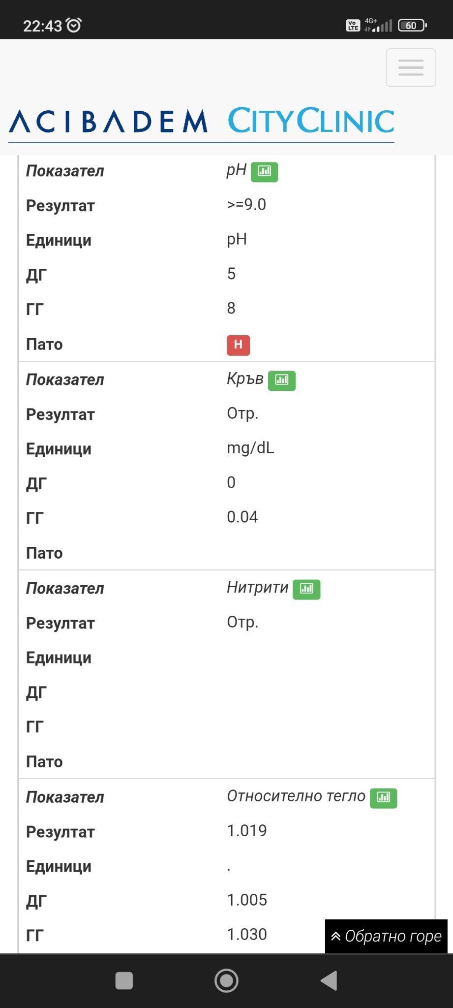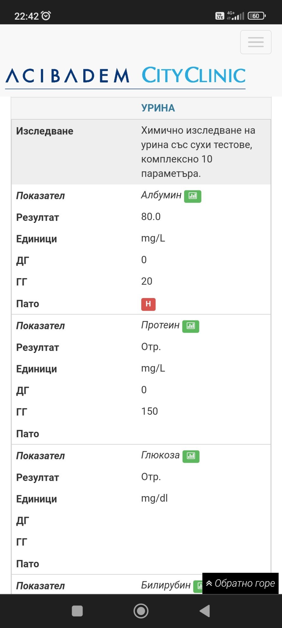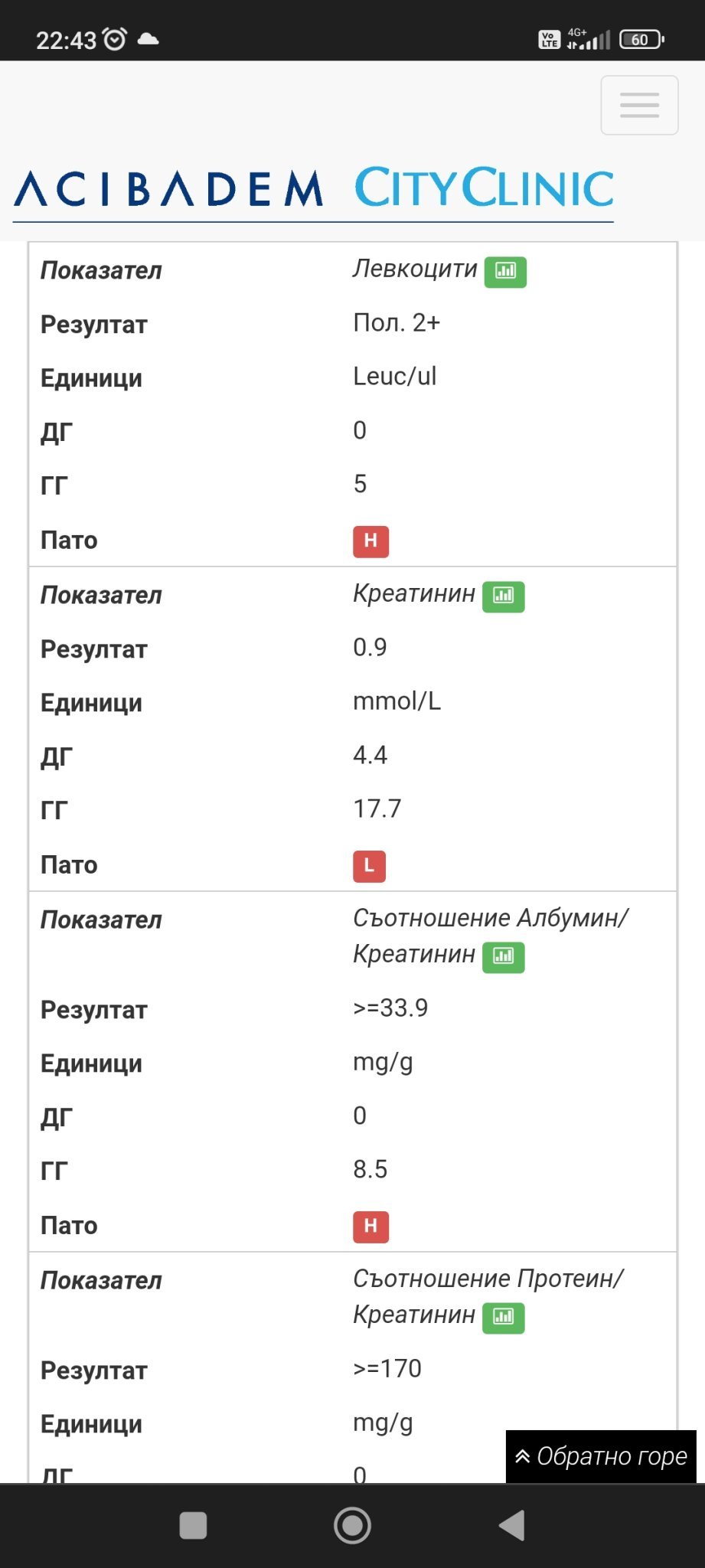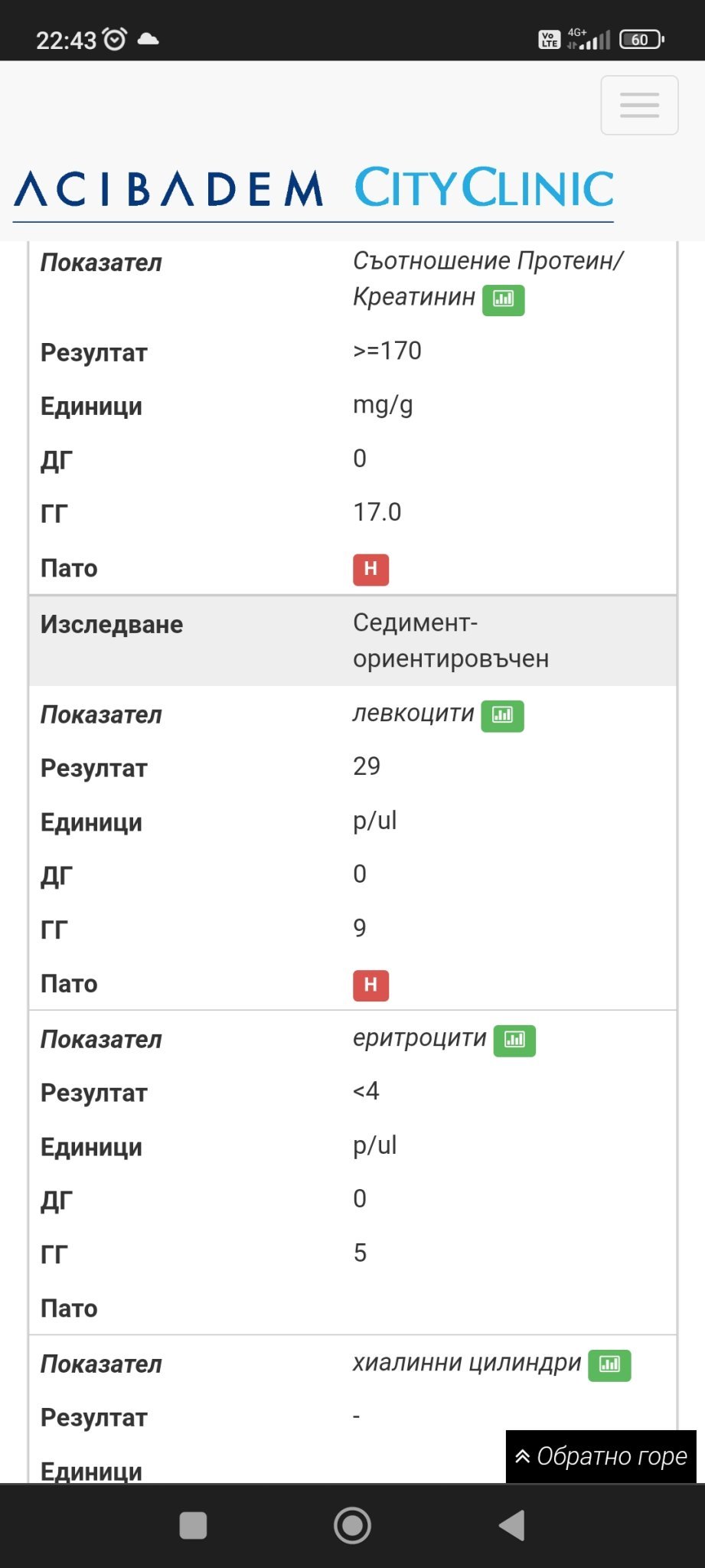 Това са изследванията от Урината, които сочат към Бъбречни проблеми, а ми е правен ИЗ и Скенер преди два месеца и освен киста в левия бъбрек нищо друго не намериха.