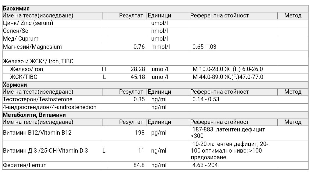 Резултатите показват, че холестеролът е в нормални граници, а съотношението триглицериди-HDL е благоприятно. Това показва нисък риск от сърдечно-съдови инциденти. Важно е да се игнорират стойностите, отбелязани като „HIH“, тъй като те не са от значение. Препоръчително е да се ограничи консумацията на въглехидрати и алкохол, за да се намали маркерът ALT. Също така, скорошна коремна ехография се препоръчва.