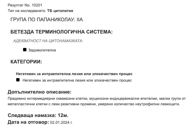 Здравейте! Как бихте разчели тези резултати от цитонамазка?